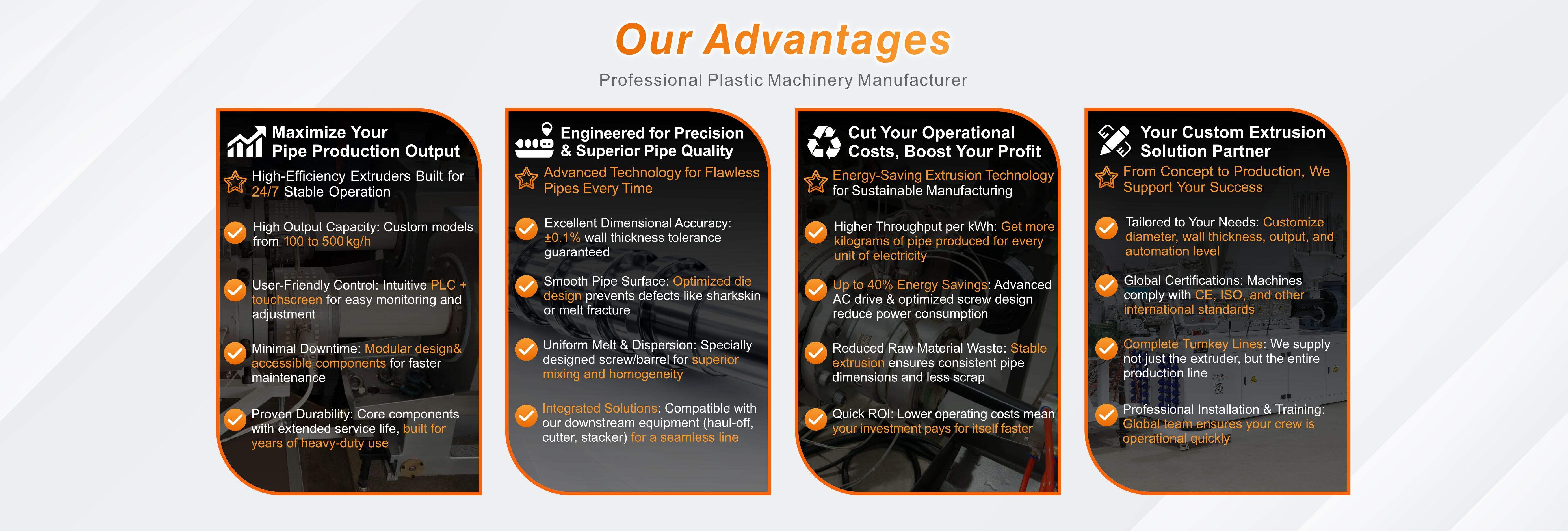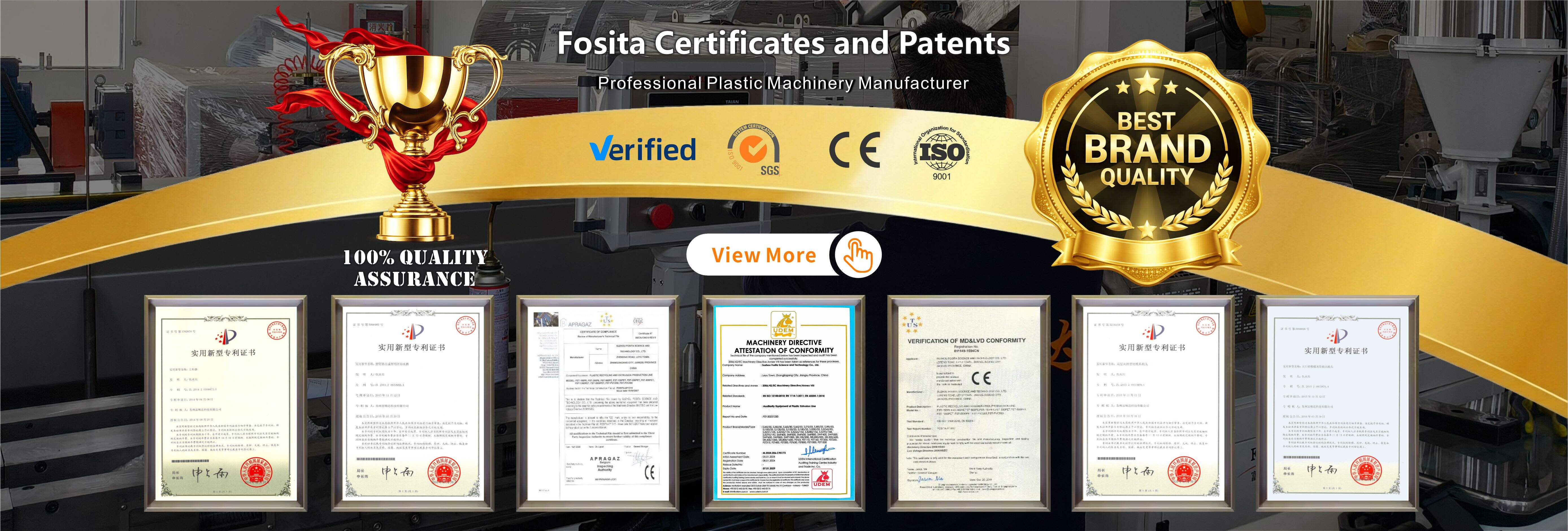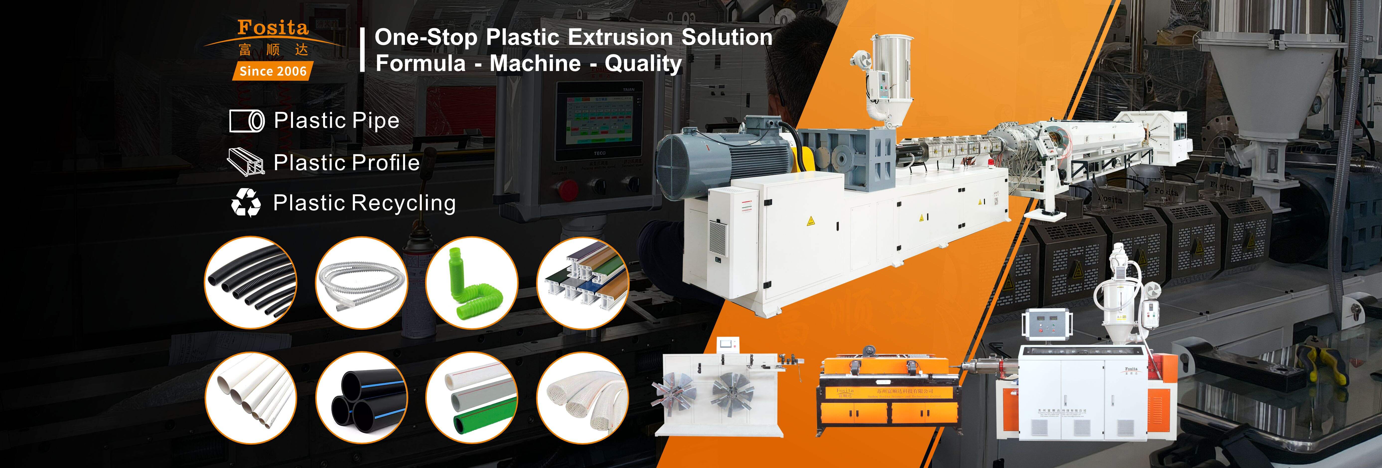 Established in 2003,Fosita company is plastic machinery manufacturer for 20 years in China. Covers arounbd 2,000 square meters and machines are exported over 80 countries.